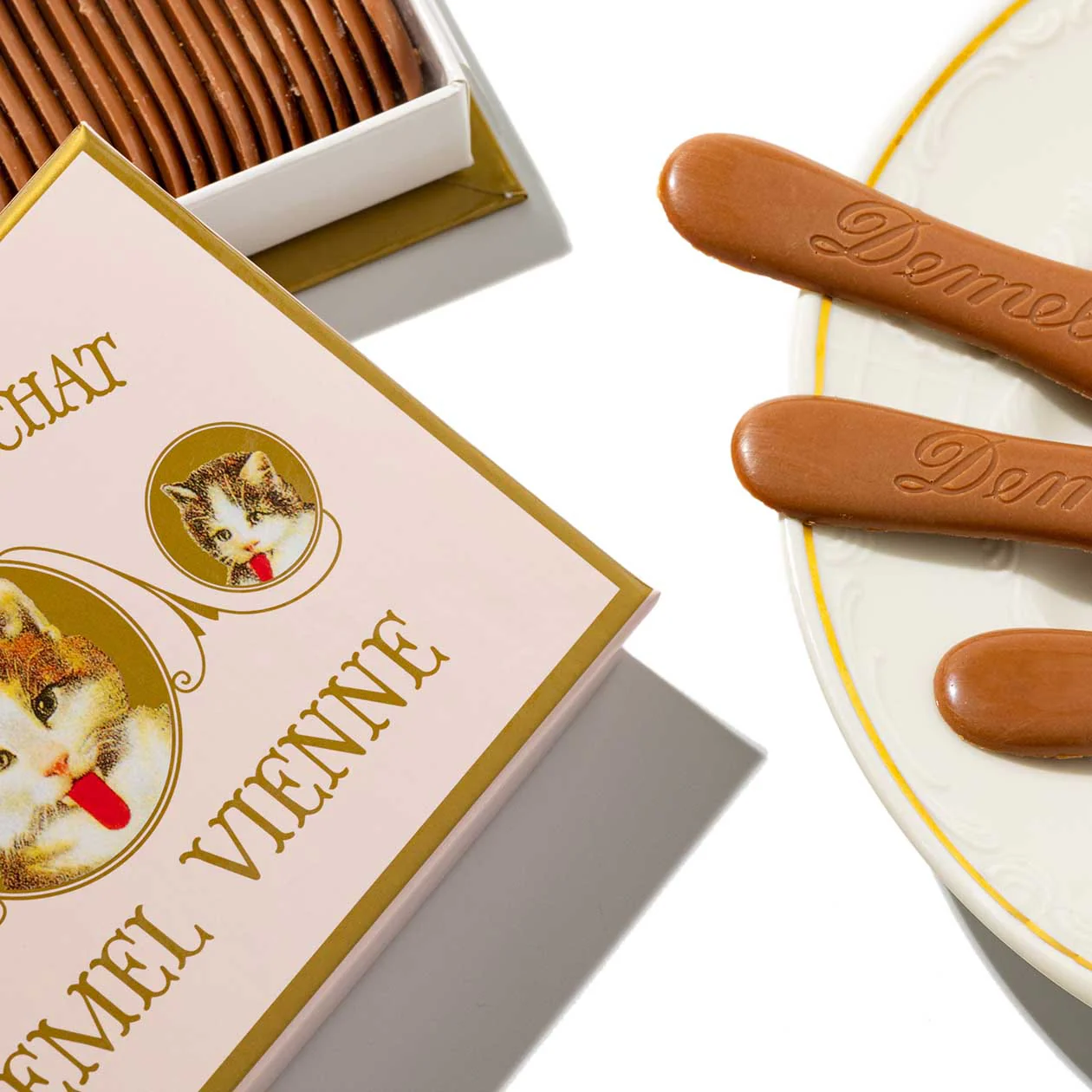 Von den französischen Löffelbiskuit "Langue-de-chat" inspiriert ist im Hause Demel die Katzenzungenform aus zarter Milchschokolade und zergeht auf der eigenen Zunge.