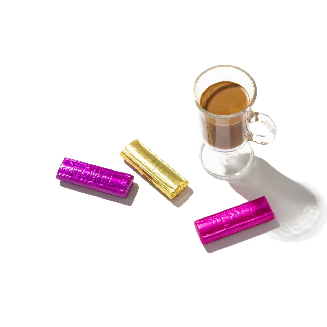Trinkschokolade aus Edelbitter- und Vollmilchschokolade, in Riegelform mit einem Rezept für die Zubereitung zu Hause